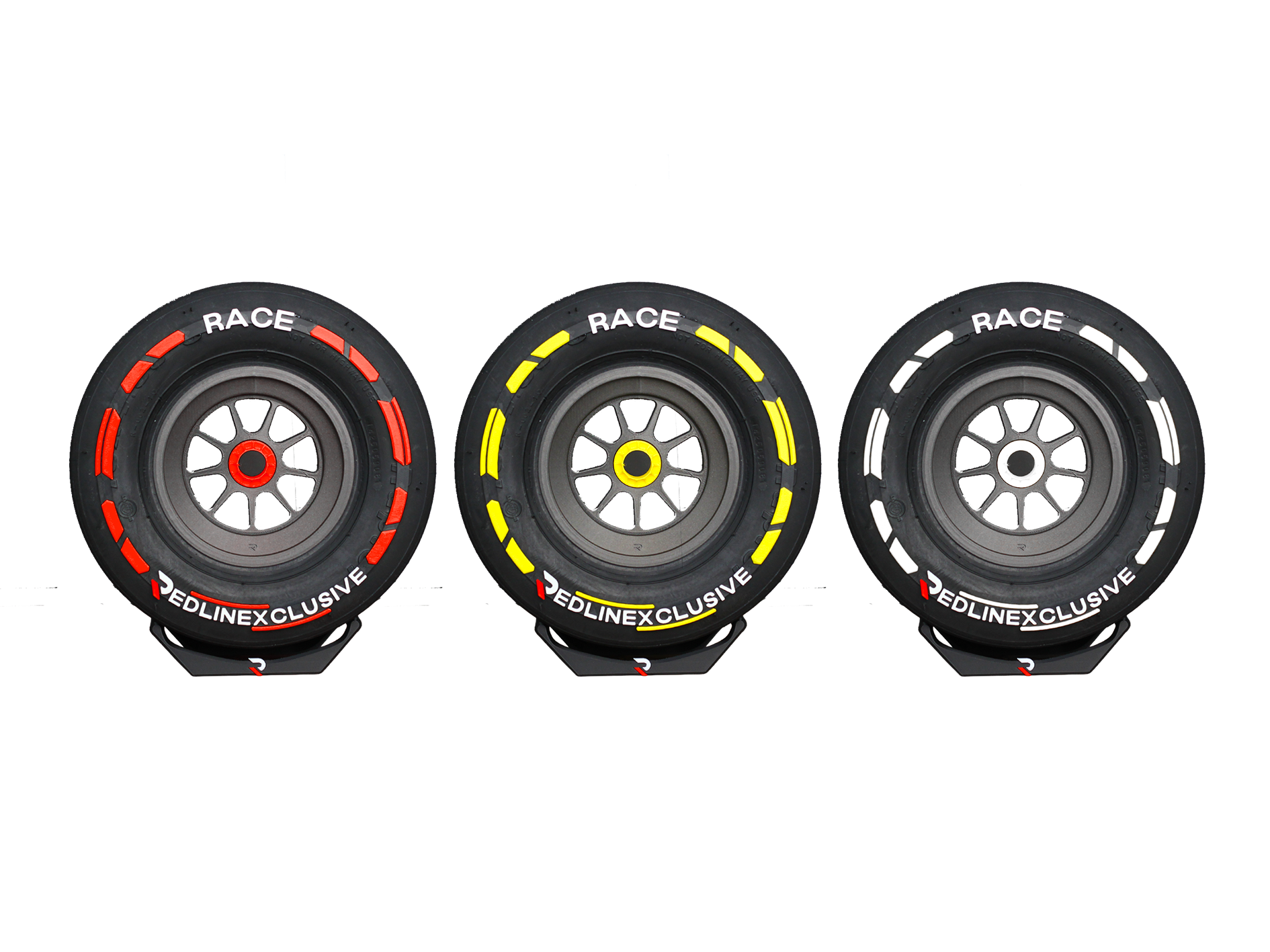 Rounding out the trio, the Hard Compound earns third place, featuring detailed markings and a distinctive wheelnut identifier, showcasing the endurance and resilience that secured its spot on the podium.